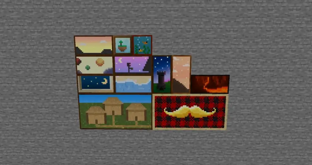 Dark Paintings - добавляет в игру много новых картин. Эти картины бывают разных размеров и художественных стилей. Каждая картина была разработана и проиллюстрирована участником сообщества! Эти картины органично сочетаются с картинами vanilla и могут быть размещены в мире, используя предмет картина. На вкладке в творческом режиме также есть элементы, которые можно использовать для размещения определенного дизайна именно там, где вы хотите.
