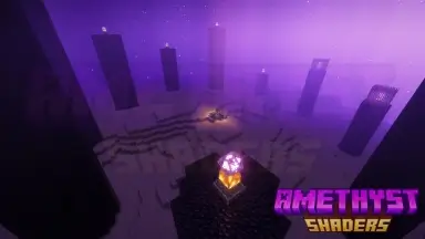 Amethyst Shaders - это настраиваемая версия Complete Reimagined, основанная в основном на изменении цвета и атмосферы. В этом шейдере используются очень насыщенные цвета, которые в определенных случаях дают нам большую видимость, большой объем облаков с яркими контурами, более яркие блоки и уникальные эффекты в каждом измерении, например, в Нижнем с интенсивными контрастами и в Краю с ярко-фиолетовыми тонами.