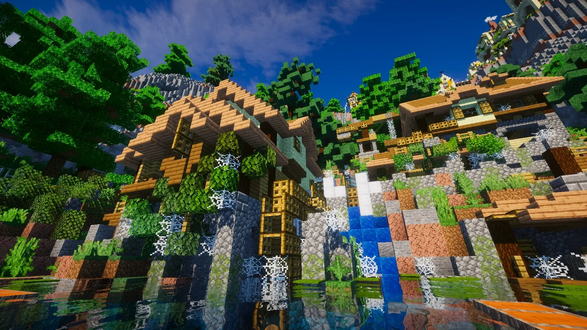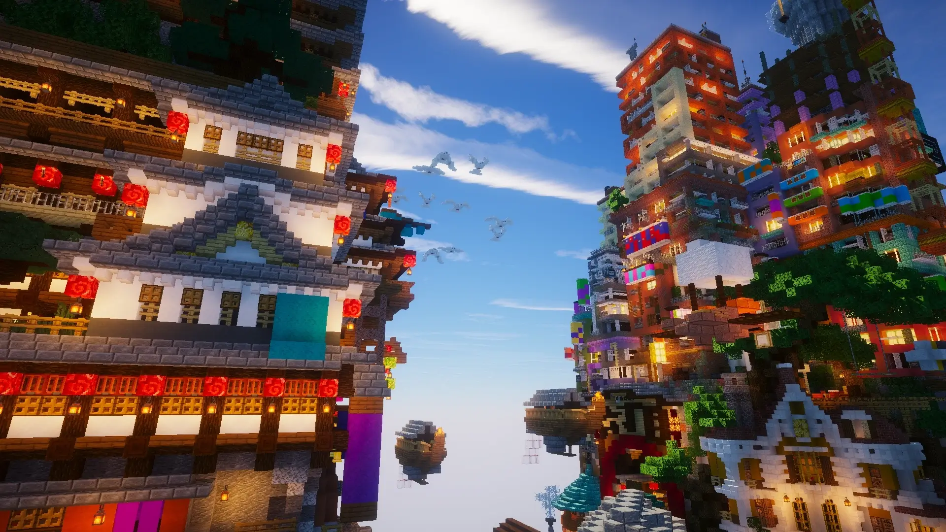 Набор впечатляет в любое время суток своими удлиненными облаками, изменением цвета окружающей среды в зависимости от времени суток, отражениями от металлических блоков, динамическим освещением и реалистичной водой.
