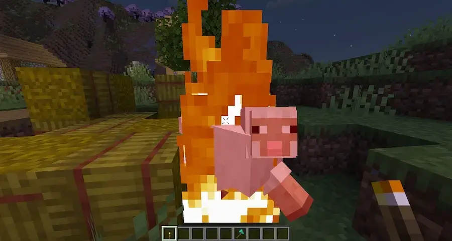Torch hit! - добавляет факелам новую функцию, они не только осветят вам путь, но и дадут вам преимущество в бою. Ударив моба с факелом в руке, вы нанесете ему урон от огня. Это идеально подходит для победы над врагами в начале, потому что у нас не будет хорошего оружия, а также для приготовления мяса при убийстве животного.